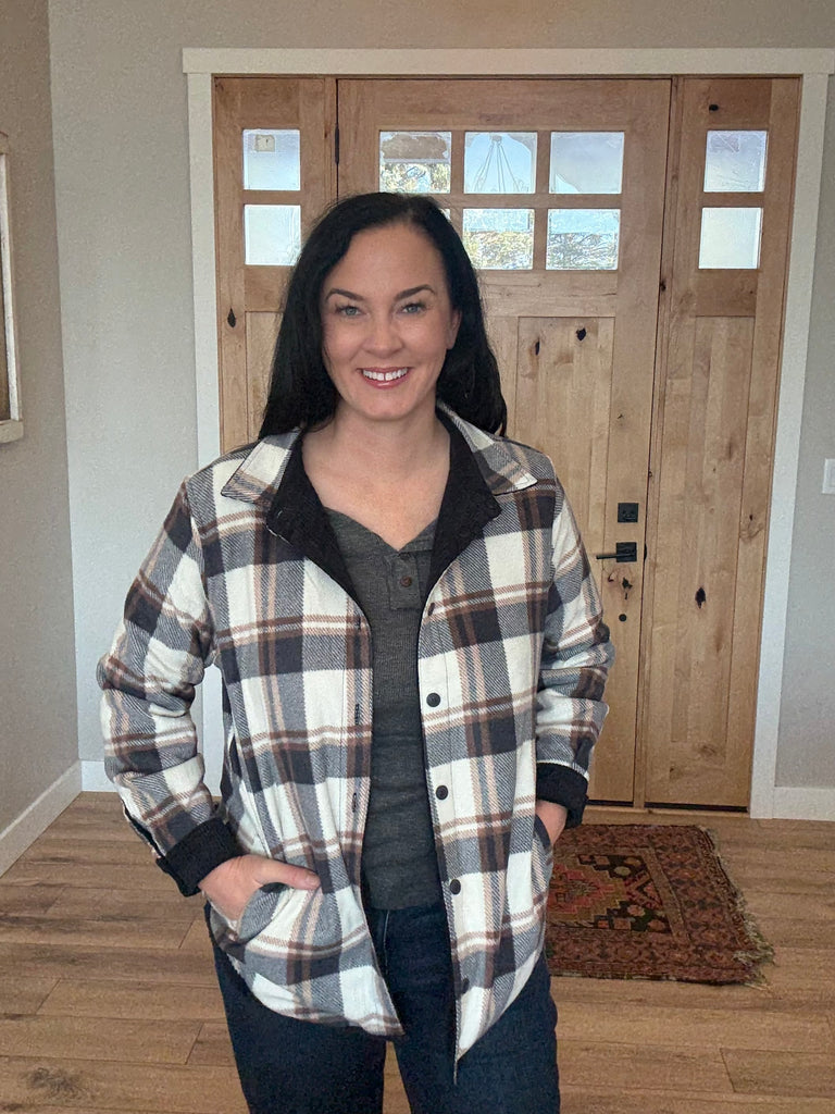 This versatile corduroy jacket offers two stylish looks in one. Wear it in a classic solid corduroy finish or flip it inside out to reveal a bold plaid pattern. Perfect for layering, it combines comfort with effortless style, making it an essential addition to your wardrobe for changing seasons. 90% polyester, 10% Nylon.