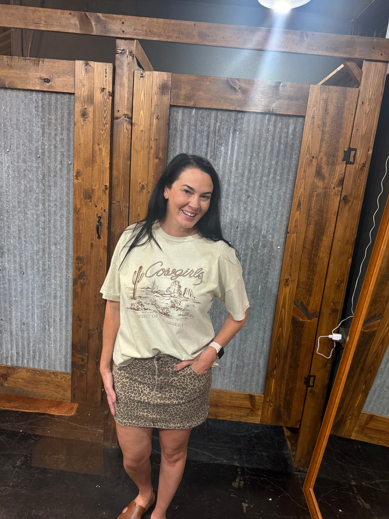 Turn heads effortlessly with this chic leopard print mini skirt. Its bold pattern adds a fierce touch to any outfit, while the flattering cut ensures comfort and confidence all day long. Perfect for making a stylish statement whether you're out with friends or enjoying a night on the town. Elevate your wardrobe with this must-have piece that combines wild style with versatile wearability. 95% cotton, 5% spandex.