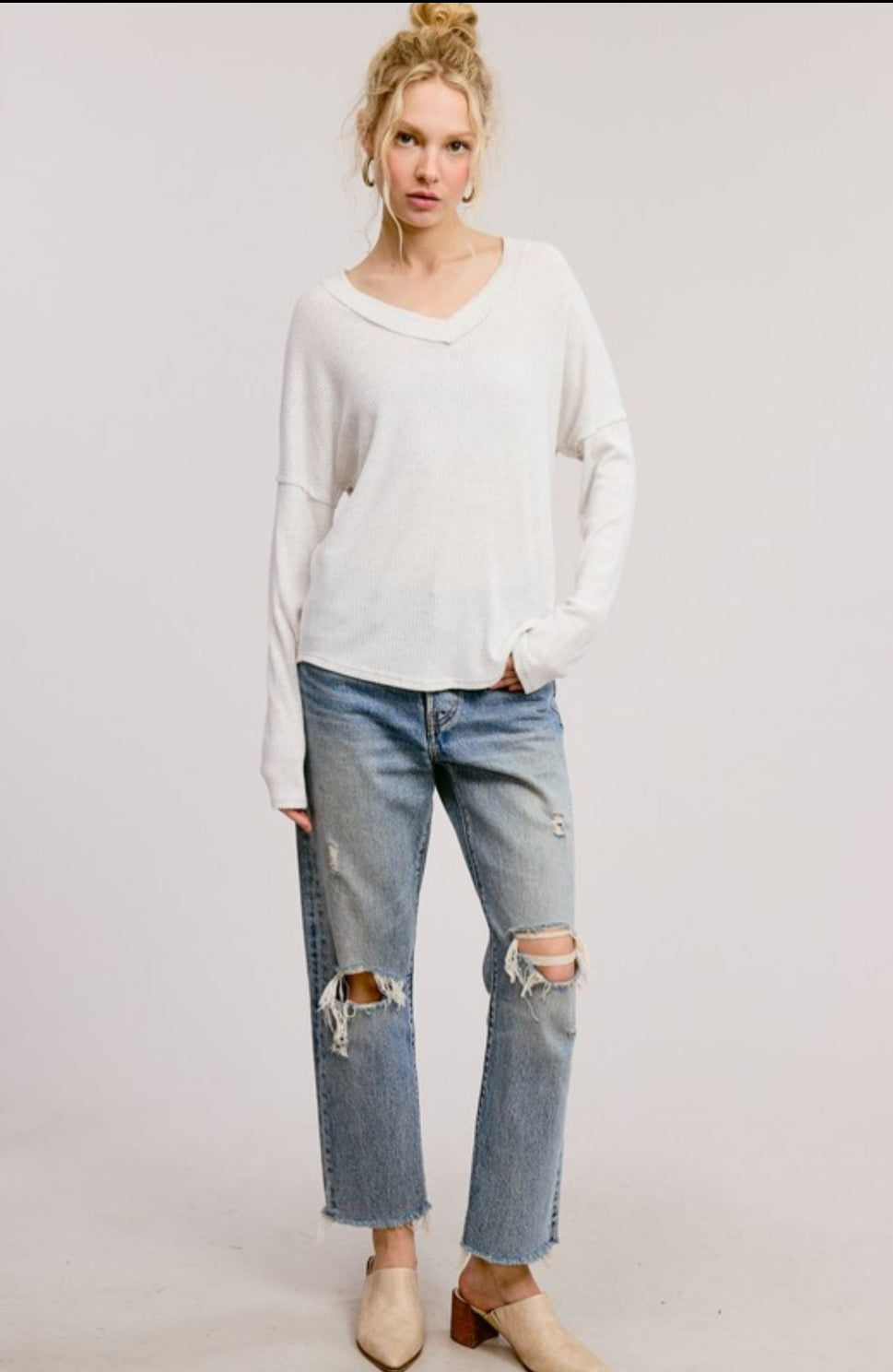 Update your casual wardrobe with this ribbed V-neck top featuring a stylish raw hem. Its soft, textured fabric offers comfortable wear while the flattering neckline enhances your silhouette. Perfect for layering or wearing on its own, this versatile piece adds effortless edge to any outfit.